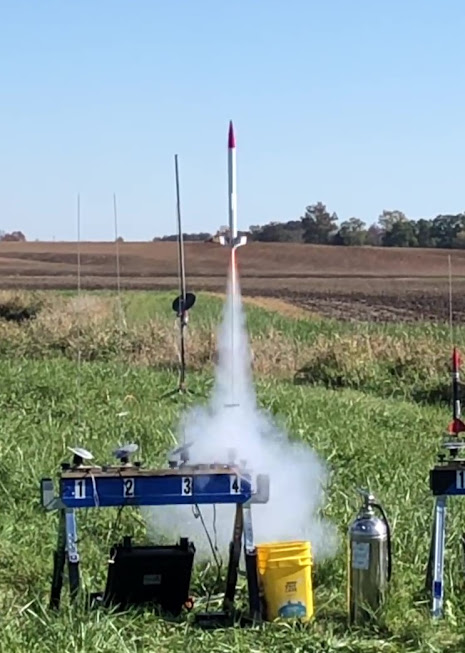 I don't think any of us saw this coming. For the second straight year we've been blessed with an almost perfect day to fly rockets in the corn/beans in November. Last year we had a day when temps were around 70 all day, but with the typical Central Ohio cornfield breeze. This year the temps were a tad lower, but the wind was almost non-existent, and the crowds showed up. Parking stretched back to the curve of the field. Kids chucked dirt clods. It was almost a park-like setting. Who do I see about making this permanent?