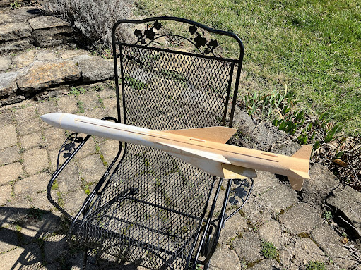 Back in the pre-pandemic days, Lee Reep visited eRockets on a Tuesday build night, so I skipped golf to hang out with him. He brought me an MPC Asp-1, which I immediately opened and began building. It's finally in the flyable stage, and I got the retina-boiling orange paint applied the other day. That paint is going to be necessary. I would imagine this thing will scream if I try a cornfield launch. I'm currently figuring out the masking.