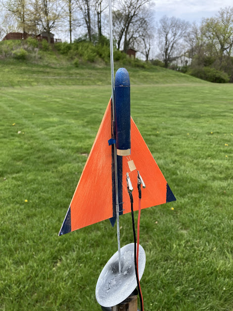 I'm working my way through the rockets that haven't seen airtime since before 2020. Today's batch was a mix of those that were with me last month, some new ones, and some recently rediscovered ones. The first flight would be a perfect example of the rediscovered ones. I threw Oscar the Grouch together the night before a competition in 2015. Everything about him was garbage and after his competition flights, he pretty much returned to the trash can. I recently found him while cleaning the shop and almost threw him out before I decided he was worth having around as a wind test bird. That's how he came to be first on the pad today.